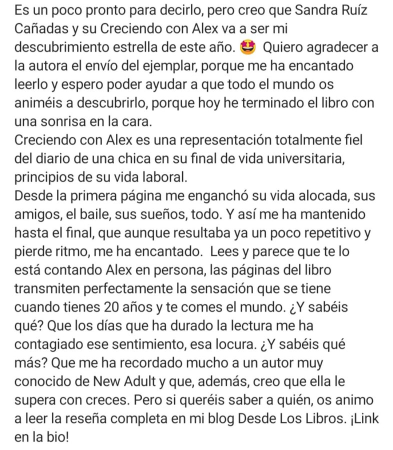 Han pasado casi dos años de la publicación de mi primera novela: CRECIENDO CON ALEX